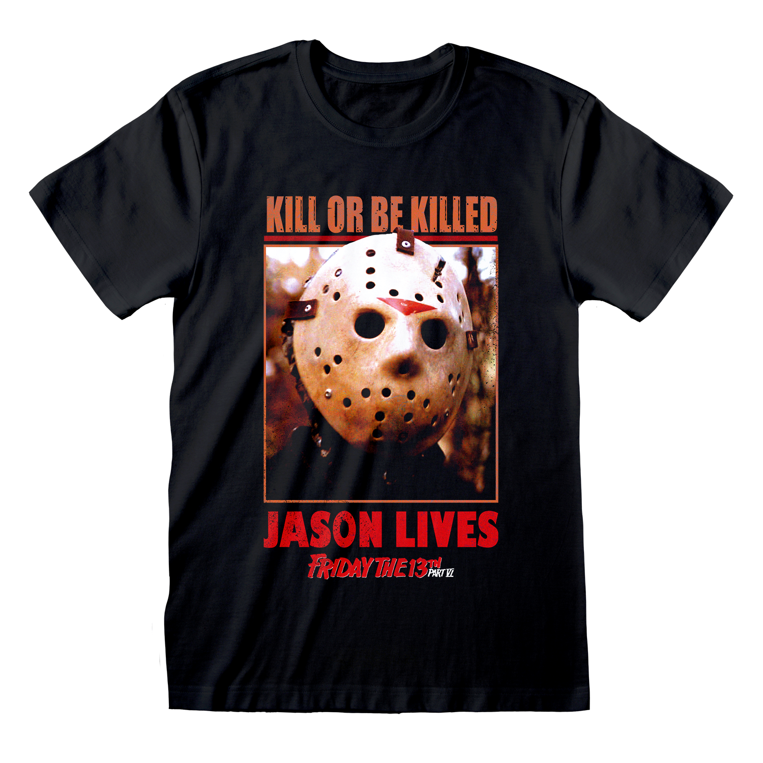 Feiere einen der legendärsten Filme der Freitag der 13.-Reihe mit diesem offiziell lizenzierten „Jason Lives“-T-Shirt. Das ausdrucksstarke Design fängt den unaufhaltsamen Schrecken von Jason Voorhees perfekt ein und macht dieses Shirt zu einem Must-have für jeden Horrorfan.